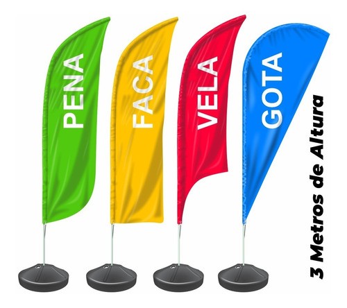 BANNER BANDEIRA AVULSA TECIDO MICROFIBRA - MODELO: GOTA- FACA -VELA - PENA